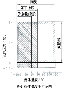 通用型EMF幾種材料的壓力溫度大體適用范圍可參閱圖4。
